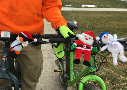 | christmas decorating decorated handlebars handle bars bike bicycle bicycles santa snowman penquin |