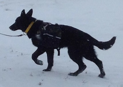| german shepherd dog black backpack panniers camping |